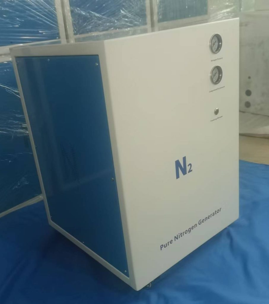 The NG series High Purity Nitrogen Generator is a device that extracts nitrogen from ambient air and removes oxygen, hydrocarbons, and moisture using Pressure Swing Adsorption (PSA) technology. It delivers continuous, stable, and high-purity nitrogen without reliance on bottled gas cylinders.Its output nitrogen upto 99.999% purity which suitable for lab use.It have built-in air compressor,no need client prepare air compressor any more.it ideal for Chromatographic analysis (GC, GC-MS): Used as carrier gas, tail gas, or reference gas. In trace analysis (e.g., pesticide residues, environmental pollutant detection), nitrogen purity directly affects baseline noise and detection limits.